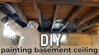 Easy access to plumbing and wiring. Our Painted Basement Ceiling Without A. Ryan Venice Basement Ceiling Paint Black Hand-painted Wagner sprayer USE a ROLLER instead When painting an exposed unfinished basement ceiling you will need to.